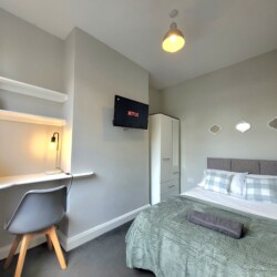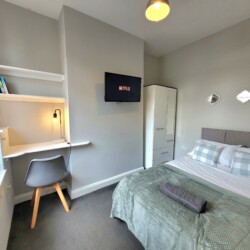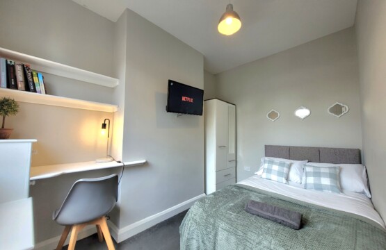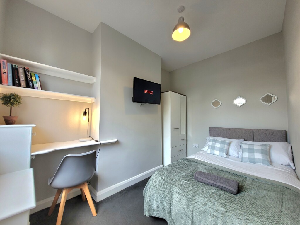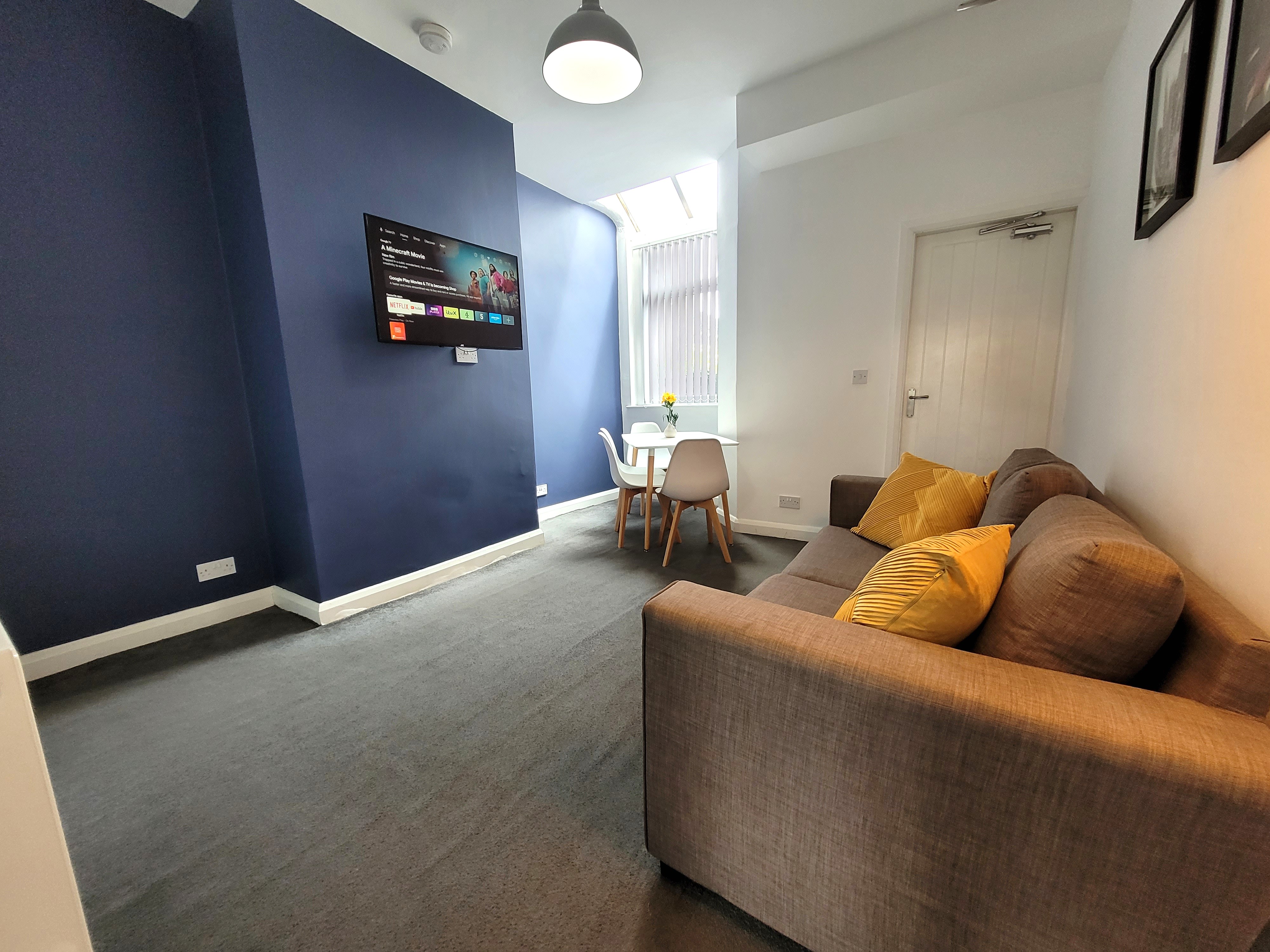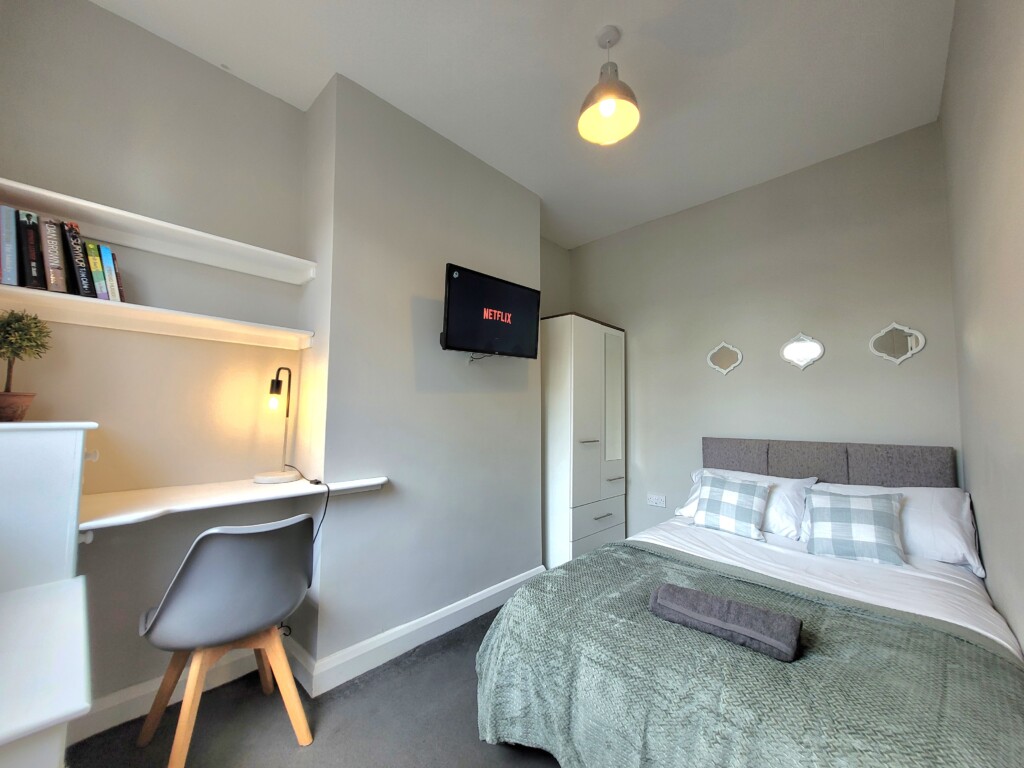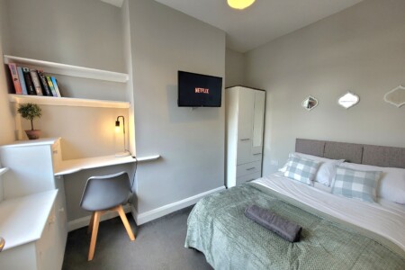 Third Bedroom (Ground Floor): Light and welcoming, with a smart TV and comfortable bedding, offering a bit of privacy from the upstairs rooms.