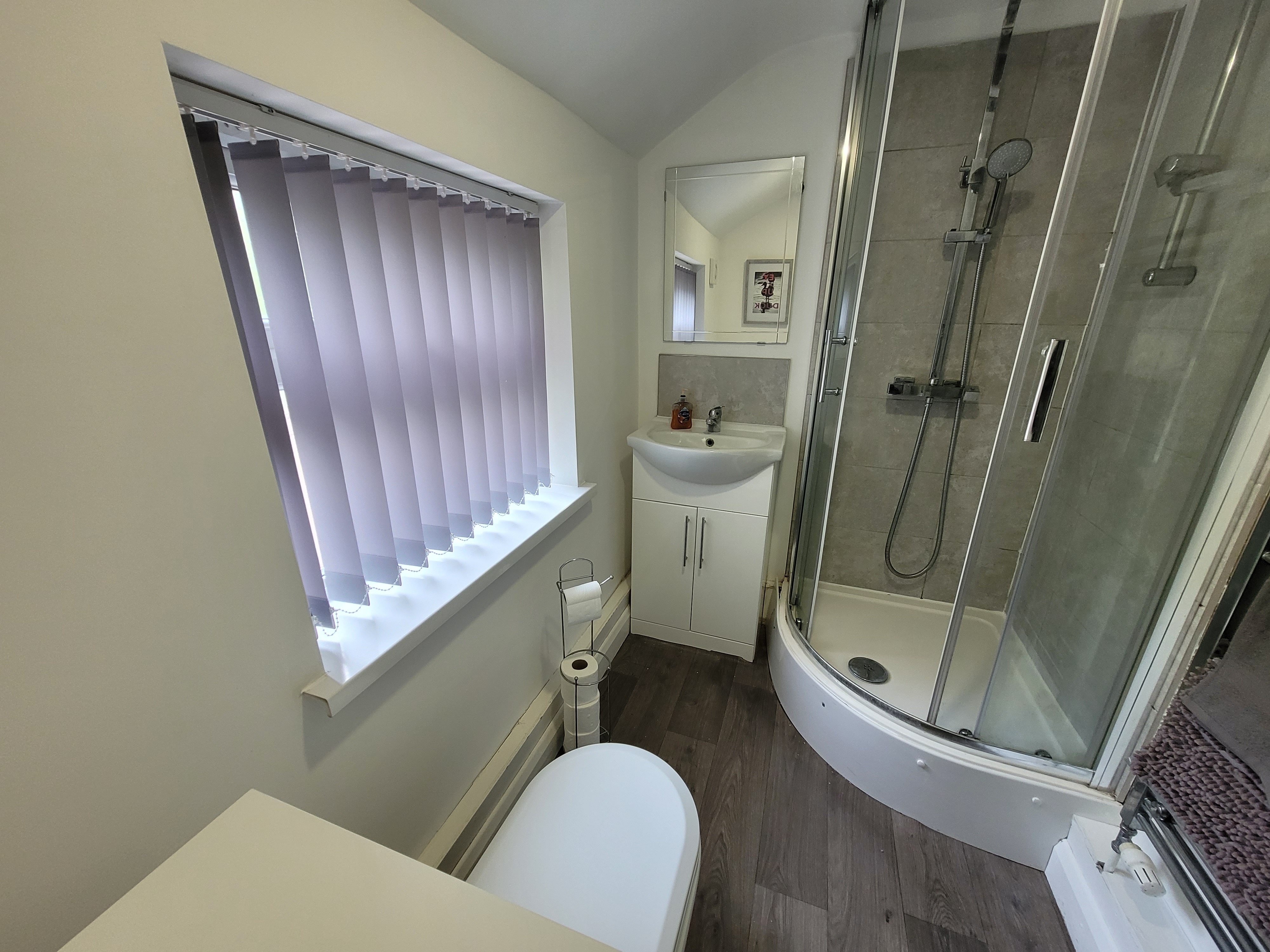 Ensuite (Upstairs): Modern walk-in shower, stylish finishes, and fresh towels provided.